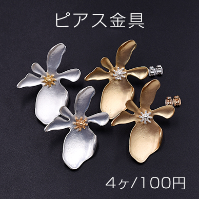 ピアス金具 フラワー 36×48mm【4ヶ】