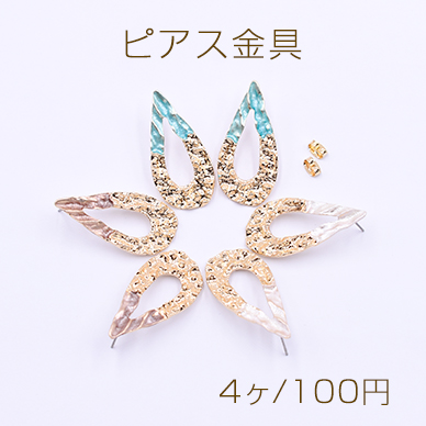 ピアス金具 エポ付き雫フレーム 19×39mm ゴールド【4ヶ】