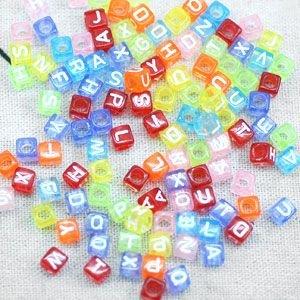 アクリルビーズ 透明 アルファベットビーズ カラーミックス 6mm(100ヶ)