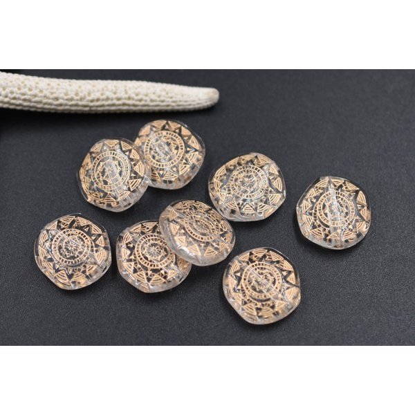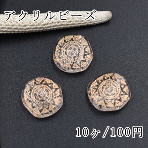 アクリルビーズ クリアアンティークゴールド パフコイン星模様線入り 18×5mm【10ヶ】