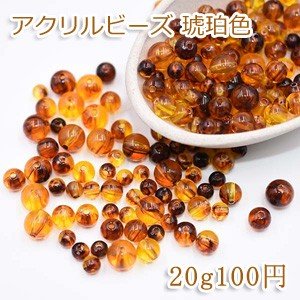 アクリルビーズ 琥珀色 丸玉 3サイズ【20g】