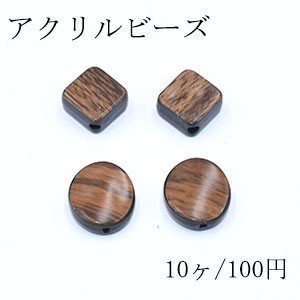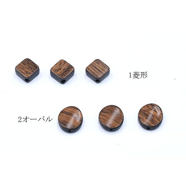 アクリルビーズ 菱形&オーバル ウッドブラウン【10ヶ】