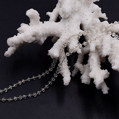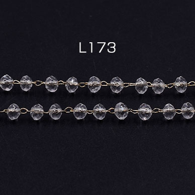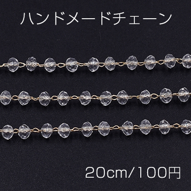 ハンドメードチェーン ソロバンのガラスビーズ付き ゴールド/クリスタル 3×4mm【20cm】