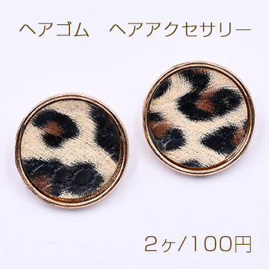 メタルボタン ヘアアクセサリー 25mm PUレザー ヒョウ柄【2ヶ】