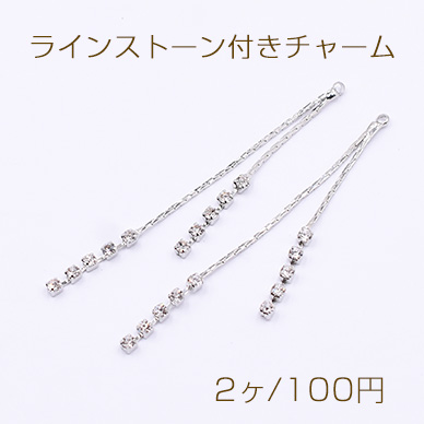 ラインストーン付きチャーム 1穴 2mm ロジウム【2ヶ】
