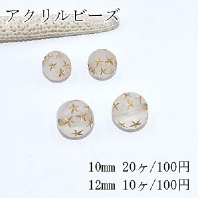 アクリルビーズ スクラブ 丸玉 彫りフラワー クリア/ゴールド 2サイズ