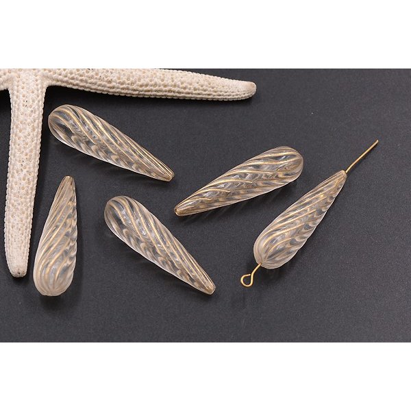 アクリルビーズ ツイスト雫 10×36mm クリアアンティークゴールド【10ヶ】