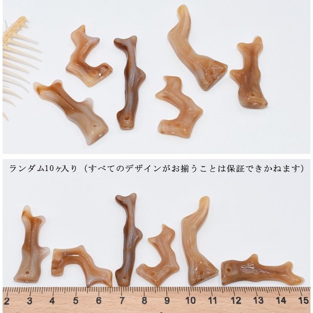 UAS高品質チャームパーツ 鹿の角 穴あり ミックス MIX 琥珀色【10ヶ】