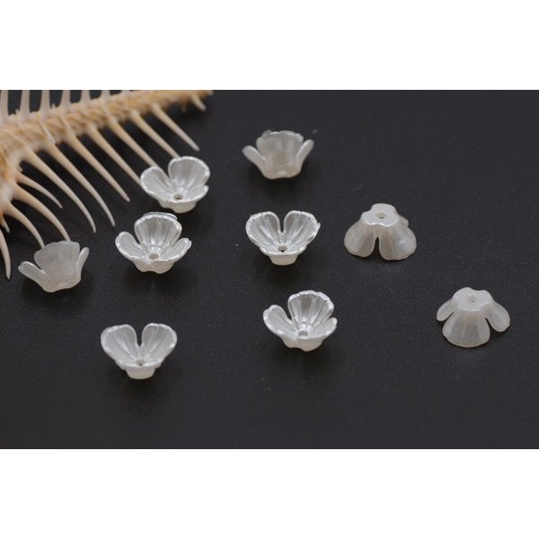 アクリルビーズ フラワー 三弁花 5×11mm パールホワイト【30ヶ】