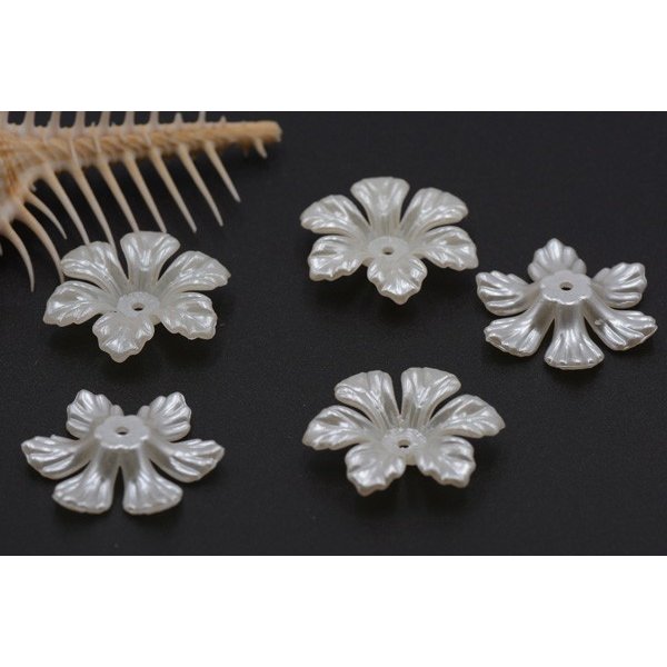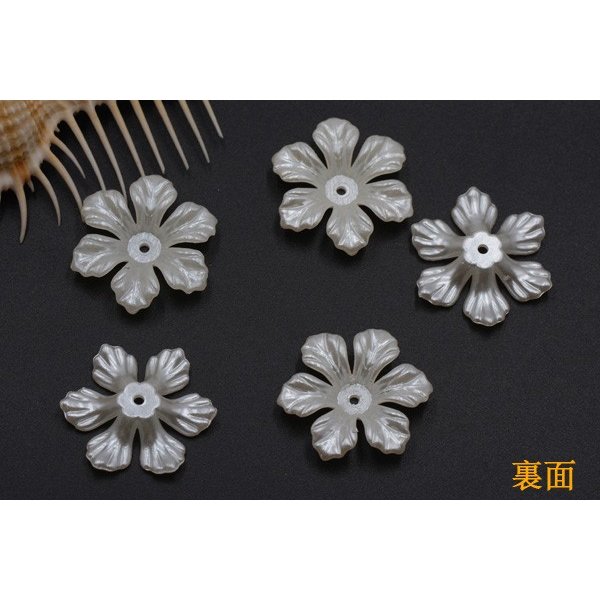 アクリルビーズ フラワー 六弁花 5×26mm パールホワイト【10ヶ】