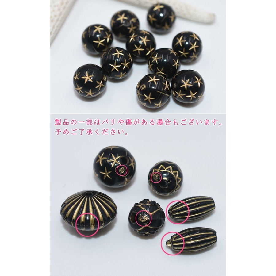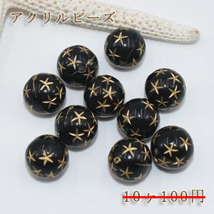 数量限定 在庫一掃半額セール!アクリルビーズ 丸玉星模様線入り 12mm【10ヶ】ブラックアンティークゴールド