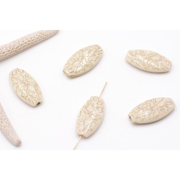 アクリルビーズ セラミックカラー オーバル 14×27mm カーキ【10ヶ】