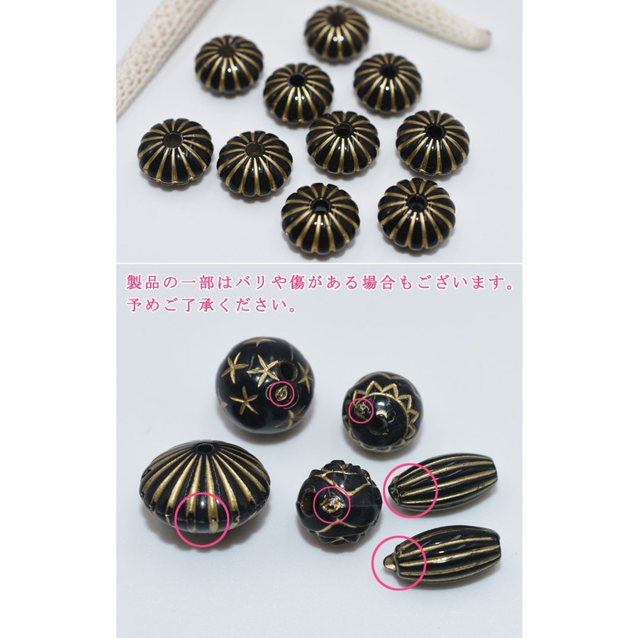 アクリルビーズ パンプキン模様入り 8×14mm【10ヶ】ブラックアンティークゴールド