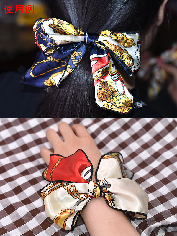 スカーフ柄 リボン ヘアゴム ヘアアクセサリー【1ヶ】