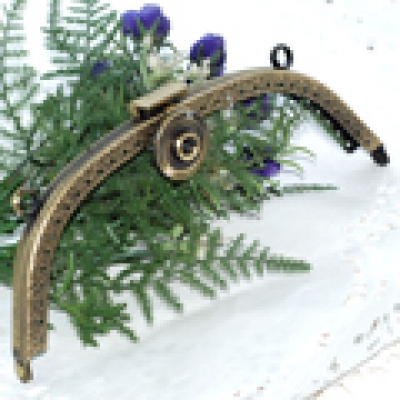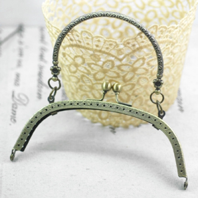 メタルがま口パーツ ハートヘッドレクタングルメッシュ柄付 真鍮古美 8cm