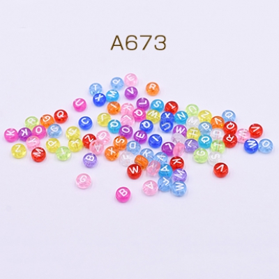 高品質アクリルビーズ 透明コイン アルファベット付き 4×7mm ミックスカラー【30g(約210ヶ)】