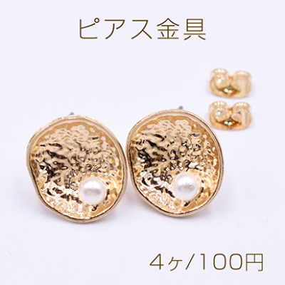 チャームパーツ 四弁花 パール&石付き 1カン 22×25mm ゴールド【2ヶ】