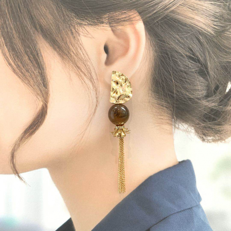 ★ピアスM3546-1、花座 M3987-G、アクリルビーズ A919-2、9ピン 0.6×26mm、ロンデル M4558-1、チェーン CP145BS